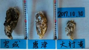 11月3日(金)PM12:00~オープン牡蠣の収穫及び他県からの入荷も完了! 生簀でスタンバイ♪今年の牡蠣のサイズを測ってみました(⦿_⦿)