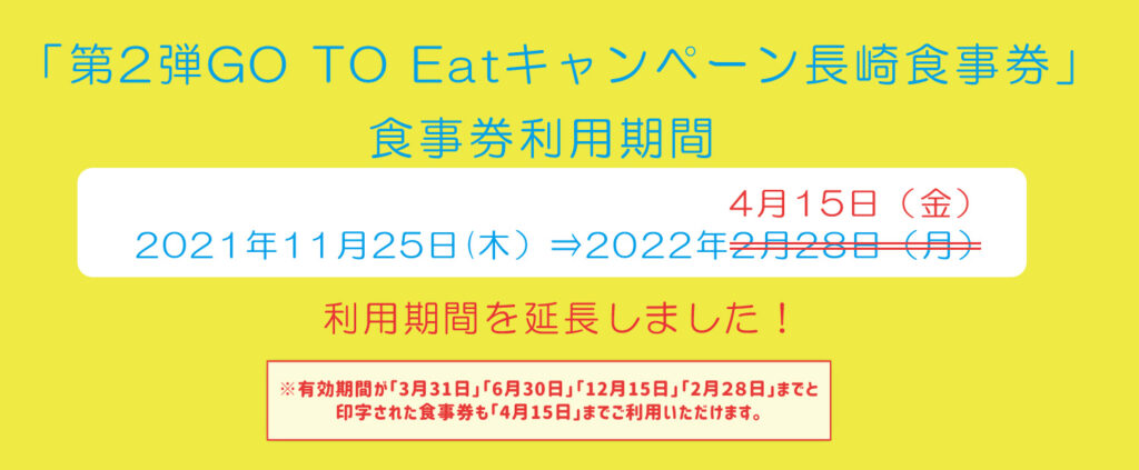 GoToイート長崎県食事券の利用期間は令和4年4月15日(金)まで延長されました!